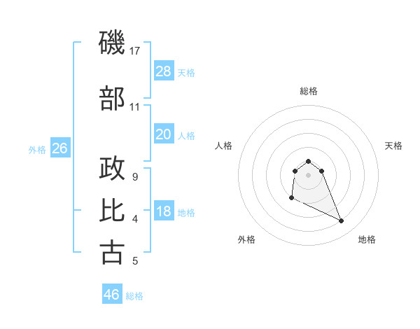 磯部 政比古さんを姓名の画数から五運を鑑定