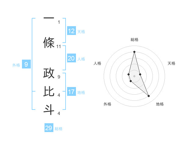 一條 政比斗さんを姓名の画数から五運を鑑定