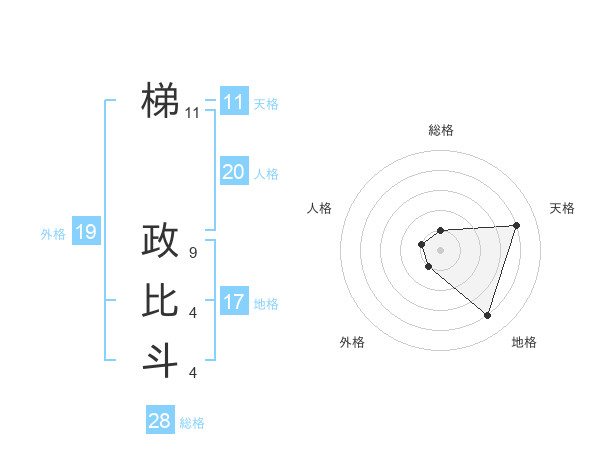 梯 政比斗さんの総格は28画の1点!