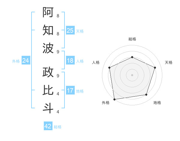 阿知波 政比斗さんの天格は25画の4点!