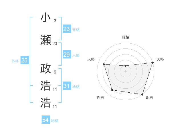 小瀬 政浩浩さんを姓名の画数から五運を鑑定