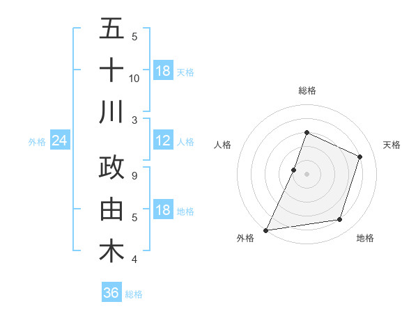 五十川 政由木さんを姓名の画数から五運を鑑定