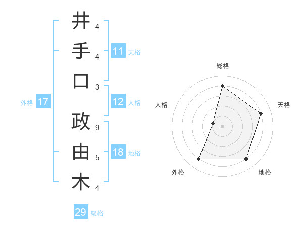 井手口 政由木さんの総格は29画の4点!