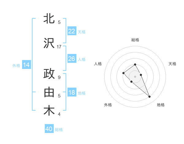 北沢 政由木さんを姓名の画数から五運を鑑定