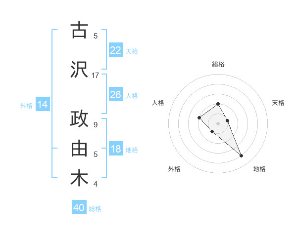 古沢 政由木さんの外格は14画の1点!