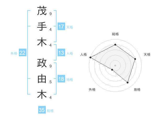 茂手木 政由木さんを姓名の画数から五運を鑑定