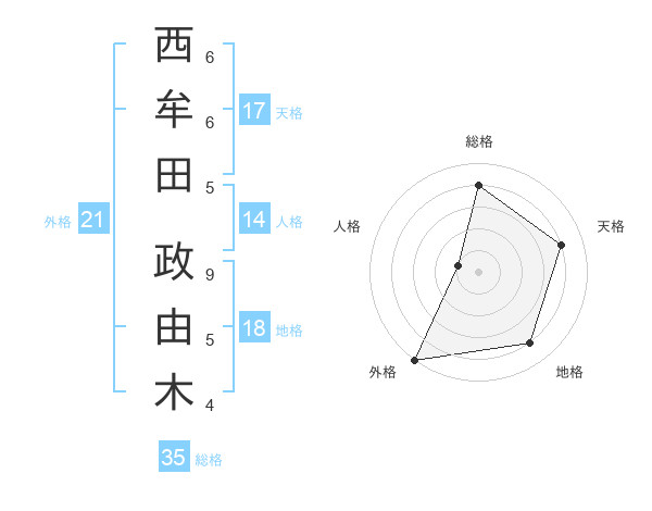 西牟田 政由木さんを姓名の画数から五運を鑑定