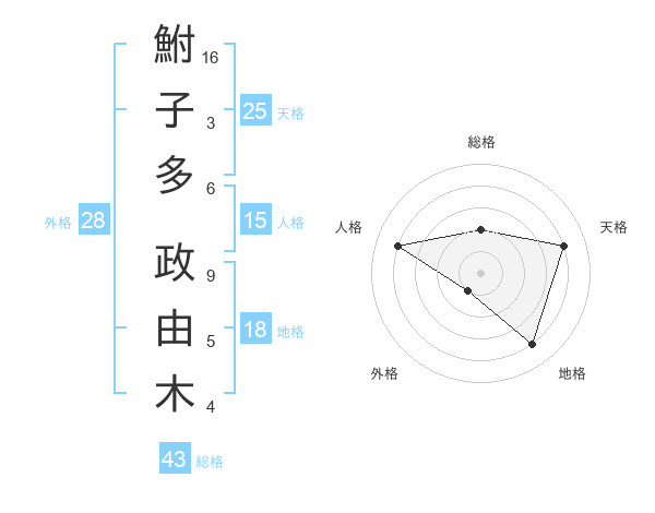 鮒子多 政由木さんを姓名の画数から五運を鑑定