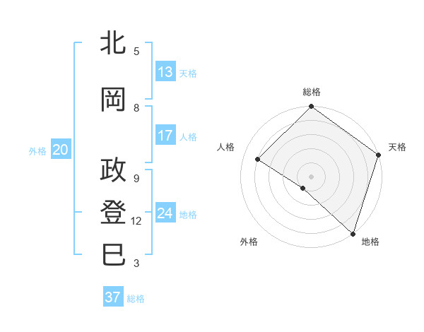 北岡 政登巳さんを姓名の画数から五運を鑑定