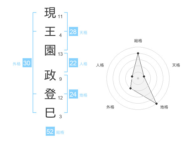 現王園 政登巳さんを姓名の画数から五運を鑑定