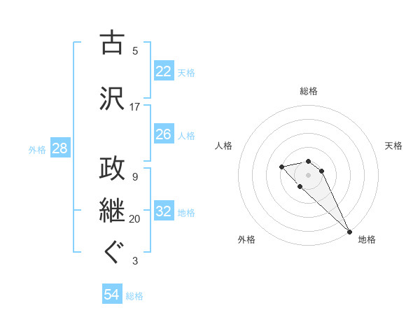 古沢 政継ぐさんの地格は32画の5点!