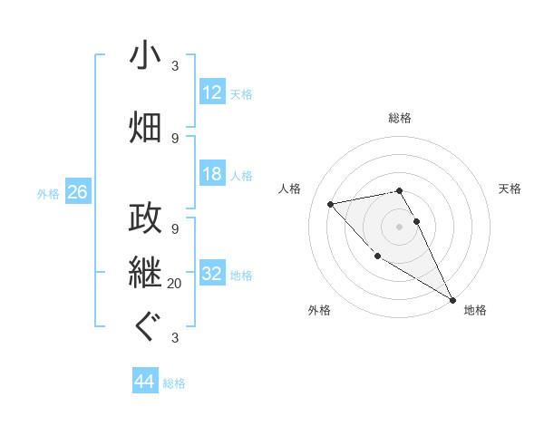 小畑 政継ぐさんを姓名の画数から五運を鑑定
