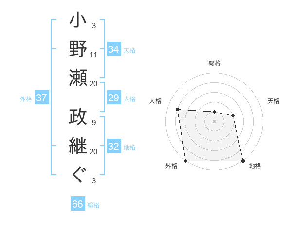 小野瀬 政継ぐさんを姓名の画数から五運を鑑定