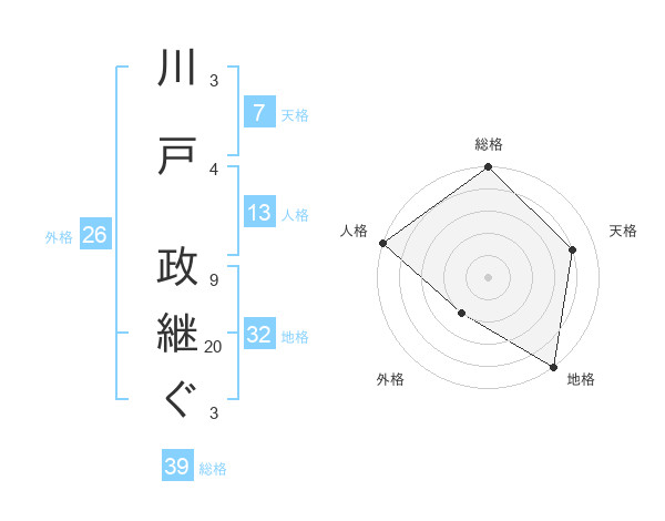 川戸 政継ぐさんを姓名の画数から五運を鑑定