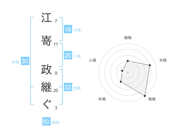 江嵜 政継ぐさんの総格は50画の2点!