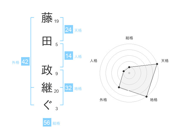 藤田 政継ぐさんを姓名の画数から五運を鑑定