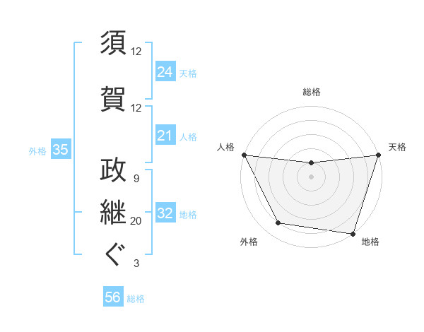 須賀 政継ぐさんを姓名の画数から五運を鑑定