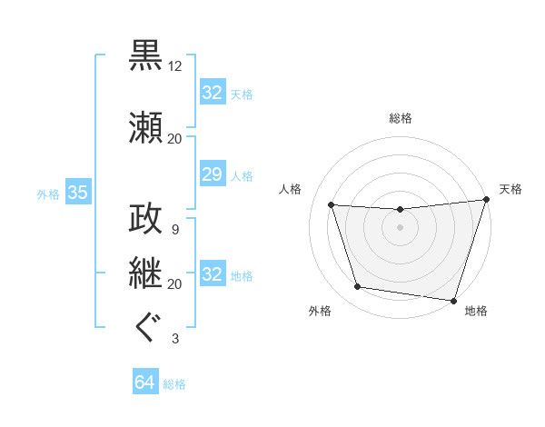 黒瀬 政継ぐさんを姓名の画数から五運を鑑定