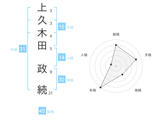 上久木田 政続さんを姓名の画数から五運を鑑定