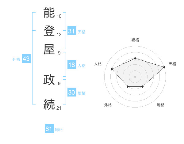 能登屋 政続さんを姓名の画数から五運を鑑定