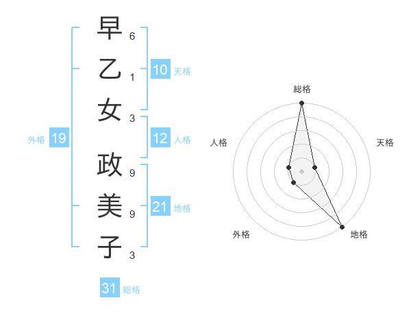 早乙女 政美子さんを姓名の画数から五運を鑑定