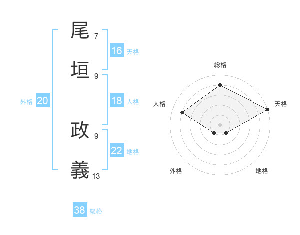 尾垣 政義さんを姓名の画数から五運を鑑定