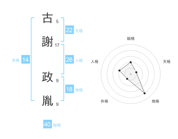 古謝 政胤さんを姓名の画数から五運を鑑定
