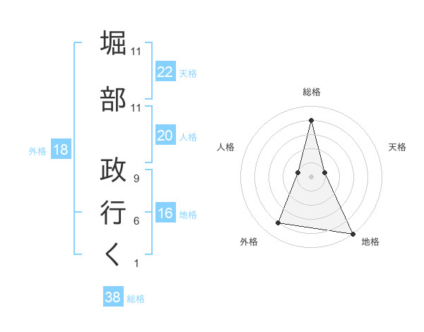 堀部 政行くさんの総格は38画の4点!