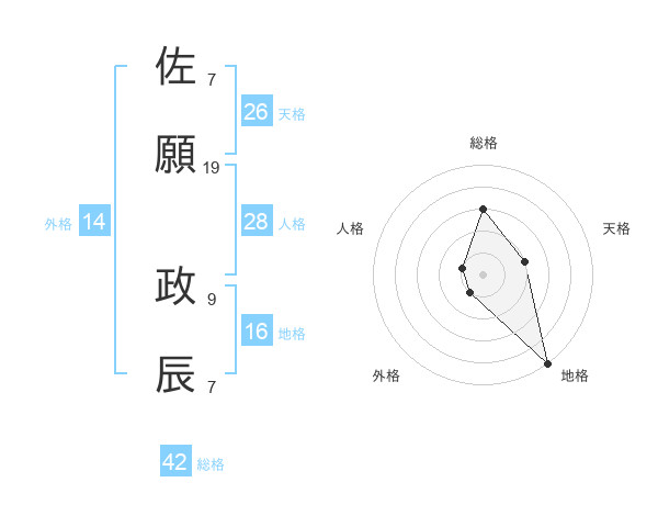 佐願 政辰さんを姓名の画数から五運を鑑定