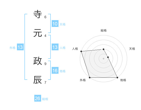 寺元 政辰さんの総格は26画の2点!