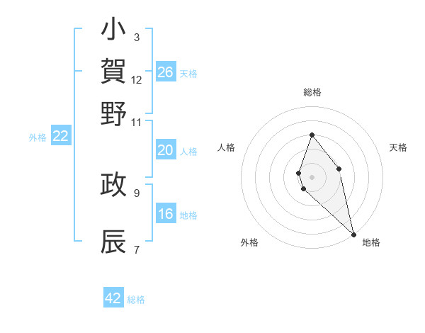 小賀野 政辰さんを姓名の画数から五運を鑑定
