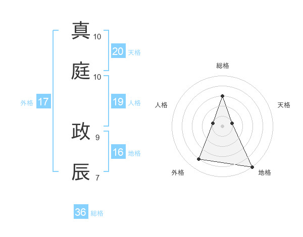 真庭 政辰さんの天格は20画の1点!