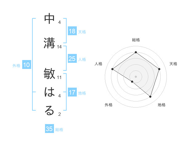 中溝 敏はるさんを姓名の画数から五運を鑑定