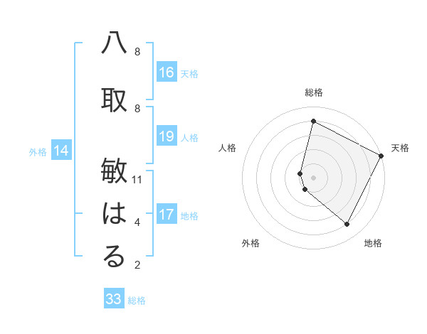 八取 敏はるさんを姓名の画数から五運を鑑定