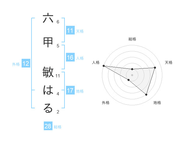 六甲 敏はるさんを姓名の画数から五運を鑑定