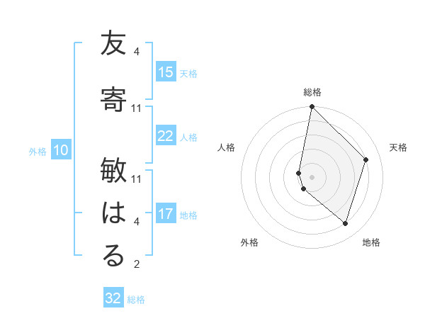 友寄 敏はるさんを姓名の画数から五運を鑑定