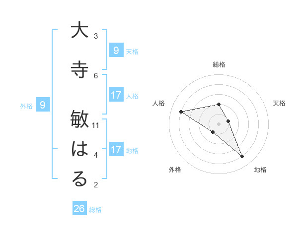 大寺 敏はるさんを姓名の画数から五運を鑑定