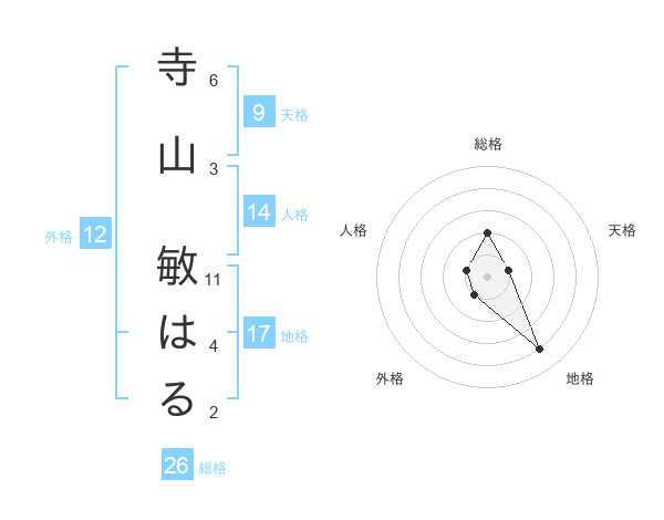 寺山 敏はるさんを姓名の画数から五運を鑑定