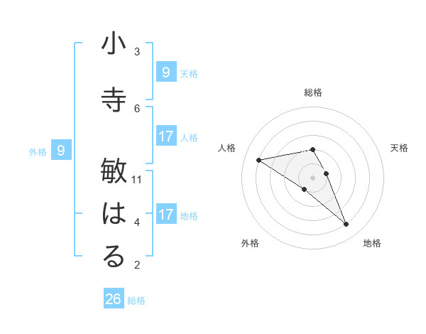 小寺 敏はるさんを姓名の画数から五運を鑑定