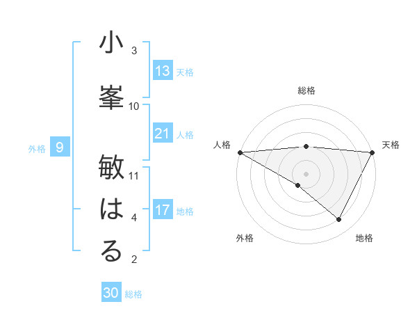 小峯 敏はるさんを姓名の画数から五運を鑑定