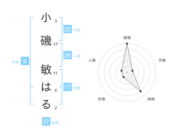 小磯 敏はるさんを姓名の画数から五運を鑑定