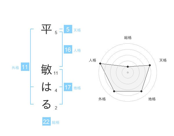平 敏はるさんの天格は5画の4点!