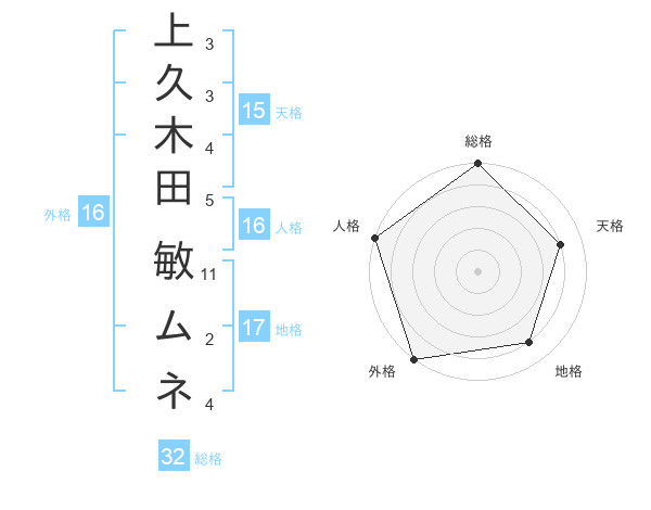 上久木田 敏ムネさんを姓名の画数から五運を鑑定