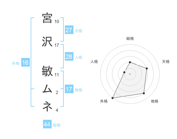 宮沢 敏ムネさんを姓名の画数から五運を鑑定