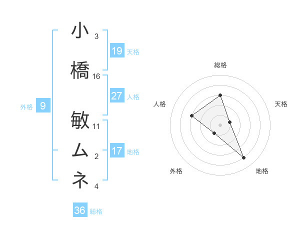小橋 敏ムネさんを姓名の画数から五運を鑑定