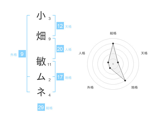 小畑 敏ムネさんを姓名の画数から五運を鑑定