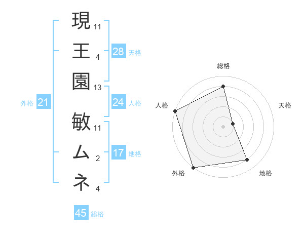 現王園 敏ムネさんを姓名の画数から五運を鑑定