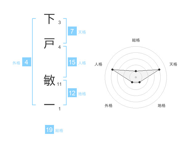 下戸 敏一さんの総格は19画の1点!