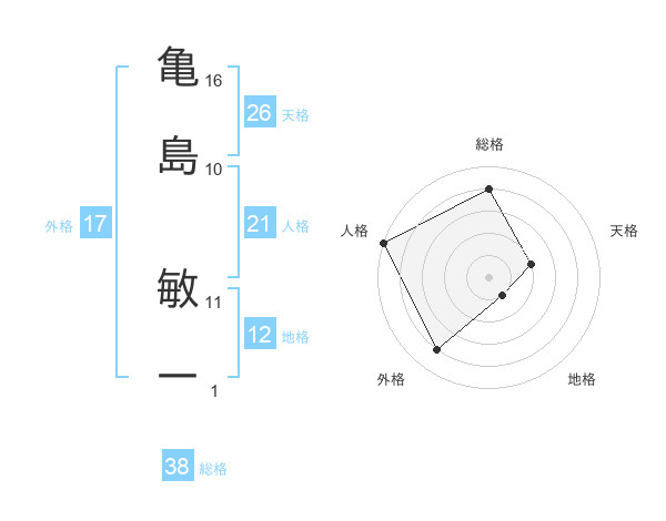 亀島 敏一さんの総格は38画の4点!