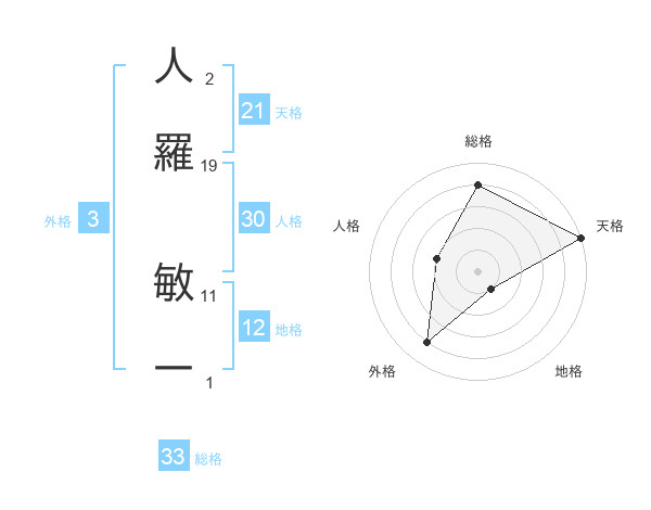 人羅 敏一さんを姓名の画数から五運を鑑定